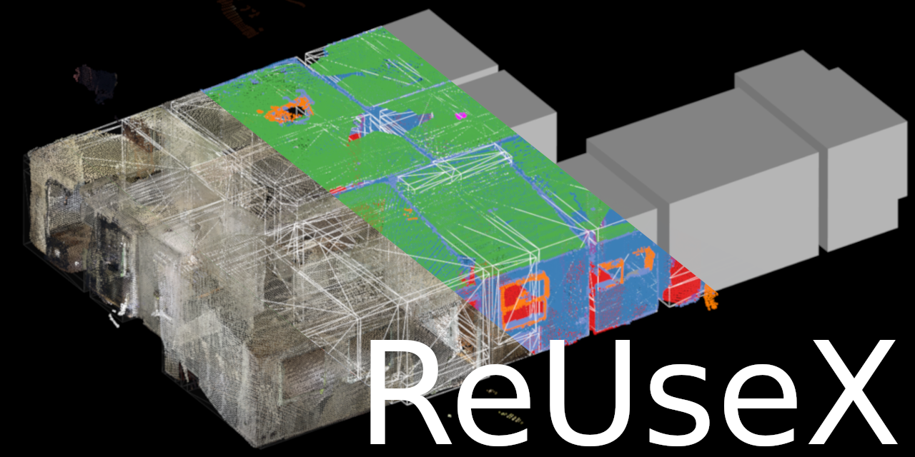 ReUseX is a comprehensive tool for processing 3D point cloud scans of building interiors, designed to support building reuse and renovation projects. The project processes LiDAR scans to create semantic 3D models with advanced segmentation capabilities for architectural elements.